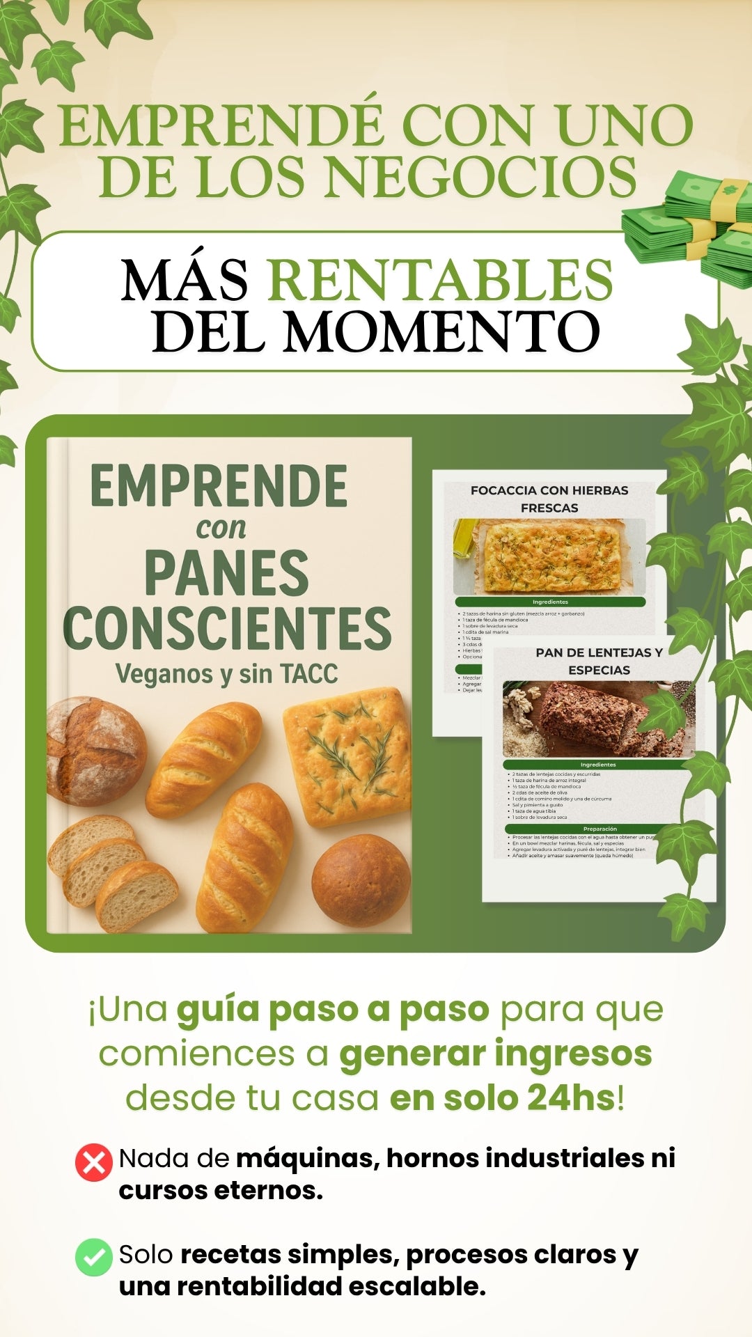 EMPRENDÉ CON PANES Veganos y sin TACC - [Guía + Recetas + 6 BONOS de REGALO]